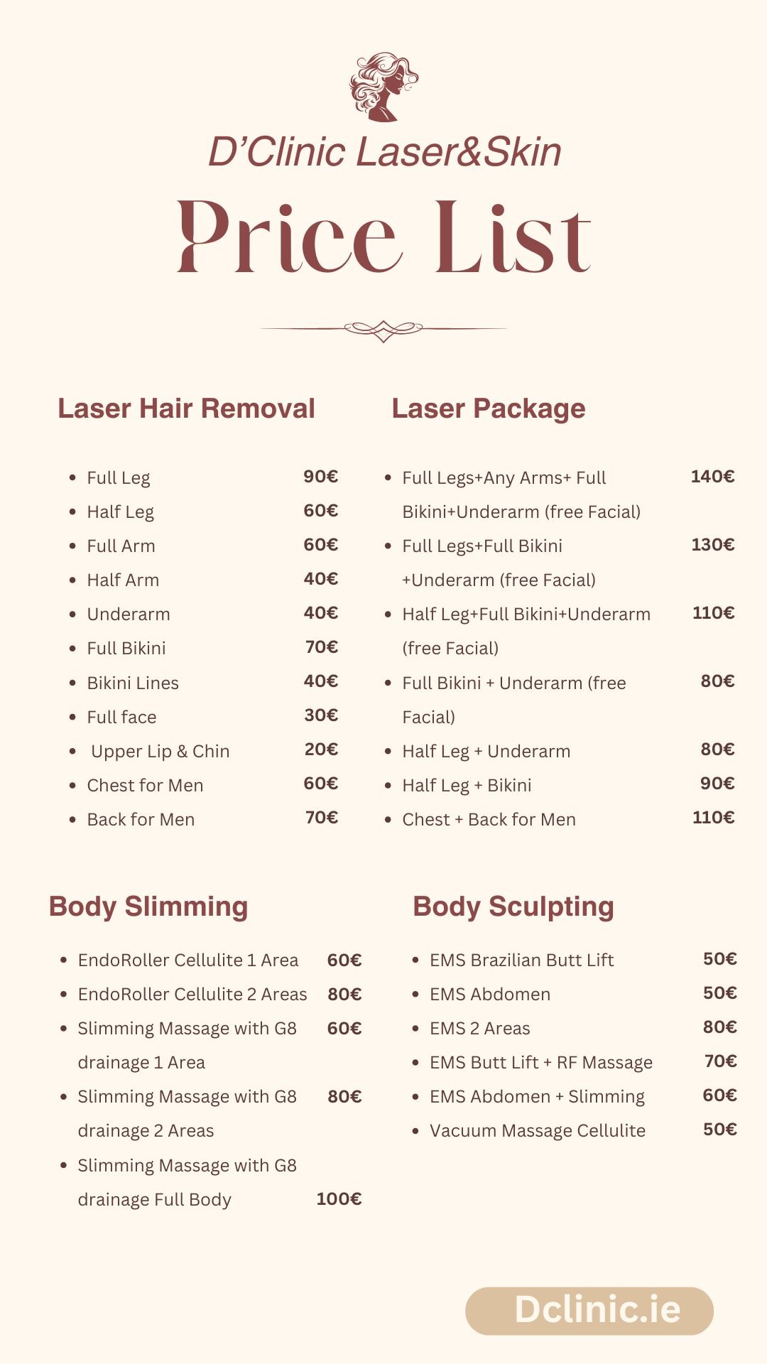 A €20 deposit is required for any booking. We require at least 48 hours notice of cancellation in order to return your deposit.